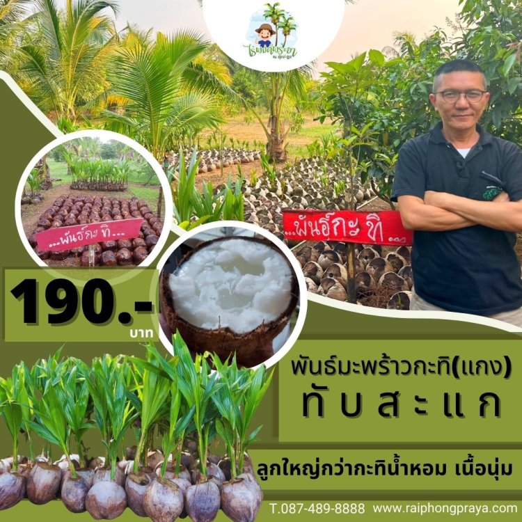 ต้นกล้ามะพร้าวแกงทับสะแกแท้ 100 % สายพันธุ์ของไร่พงศ์พระยา ลูกใหญ่ เนื้อหนา เปลือกบาง ตรงปก
