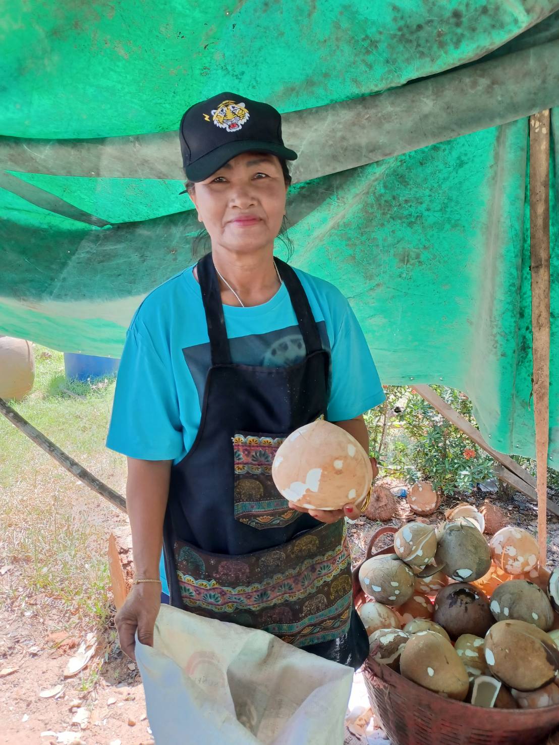 กะลามะพร้าว ขายส่งให้โรงงานถ่าน เพื่อผลิตเป็นถ่านกะลาที่ให้กำลังไฟสูง เป็นที่นิยมในต่างประเทศเป็นอย่างมาก